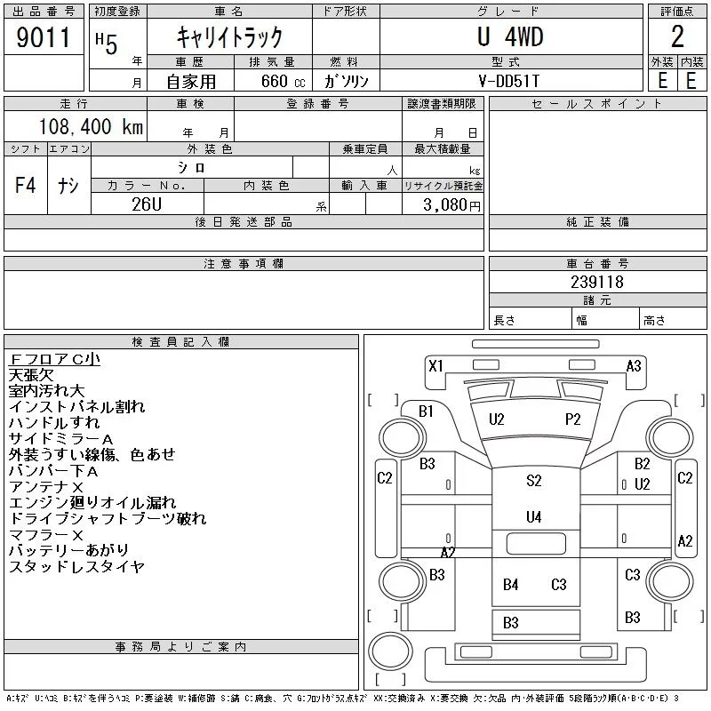 Suzuki CARRY TRUCK с аукциона Японии CAA Tohoku лот № 9011
