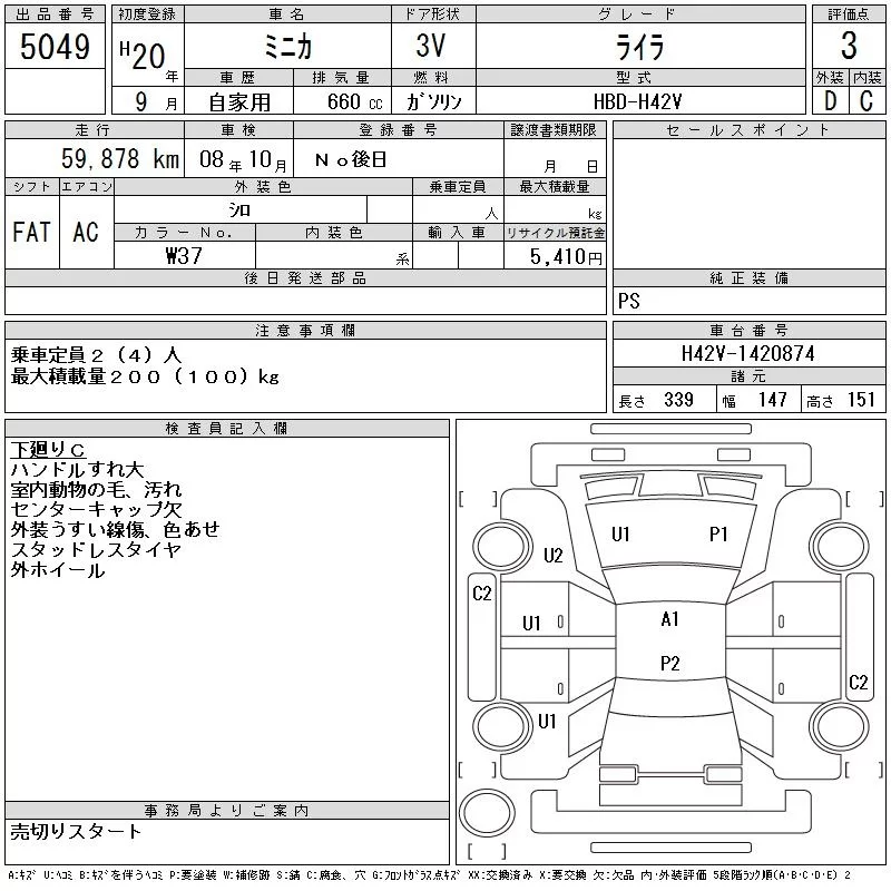 Mitsubishi MINICA с аукциона Японии CAA Tohoku лот № 5049