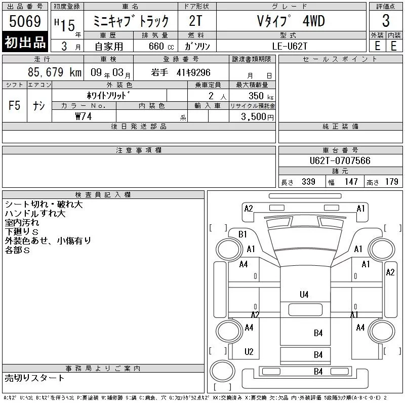 Mitsubishi MINICAB TRUCK с аукциона Японии CAA Tohoku лот № 5069