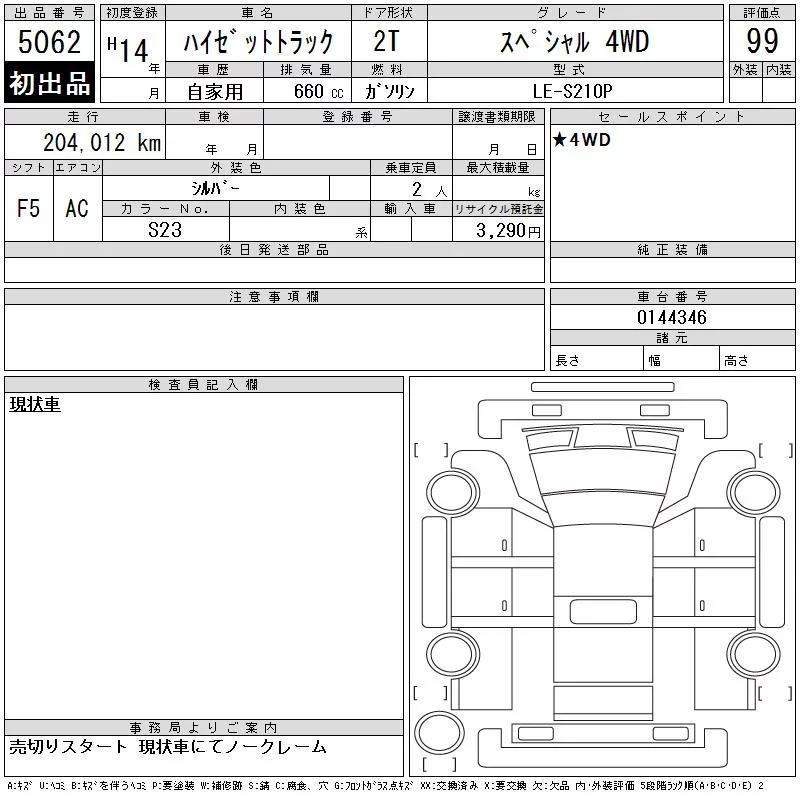 Daihatsu HIJET TRUCK с аукциона Японии CAA Tohoku лот № 5062