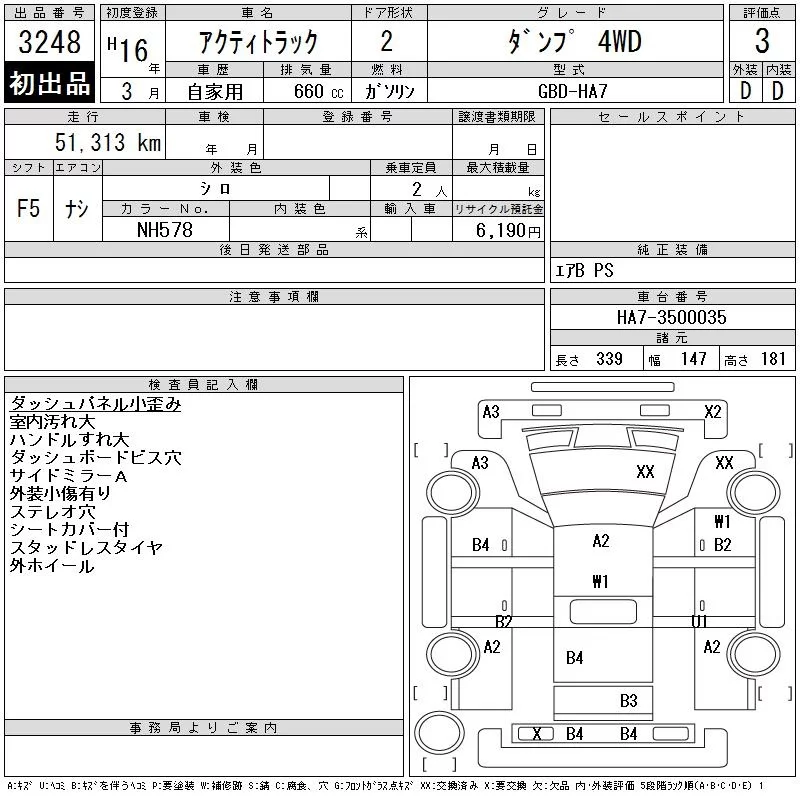 Honda ACTY TRUCK с аукциона Японии CAA Tohoku лот № 3248