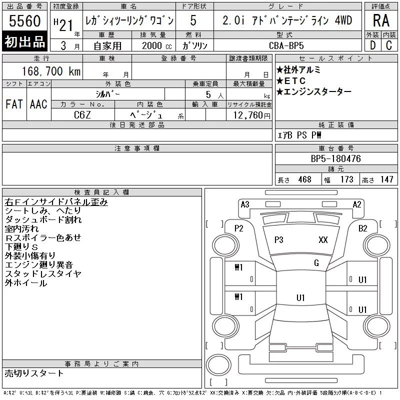 Subaru LEGACY с аукциона Японии CAA Tohoku лот № 5560