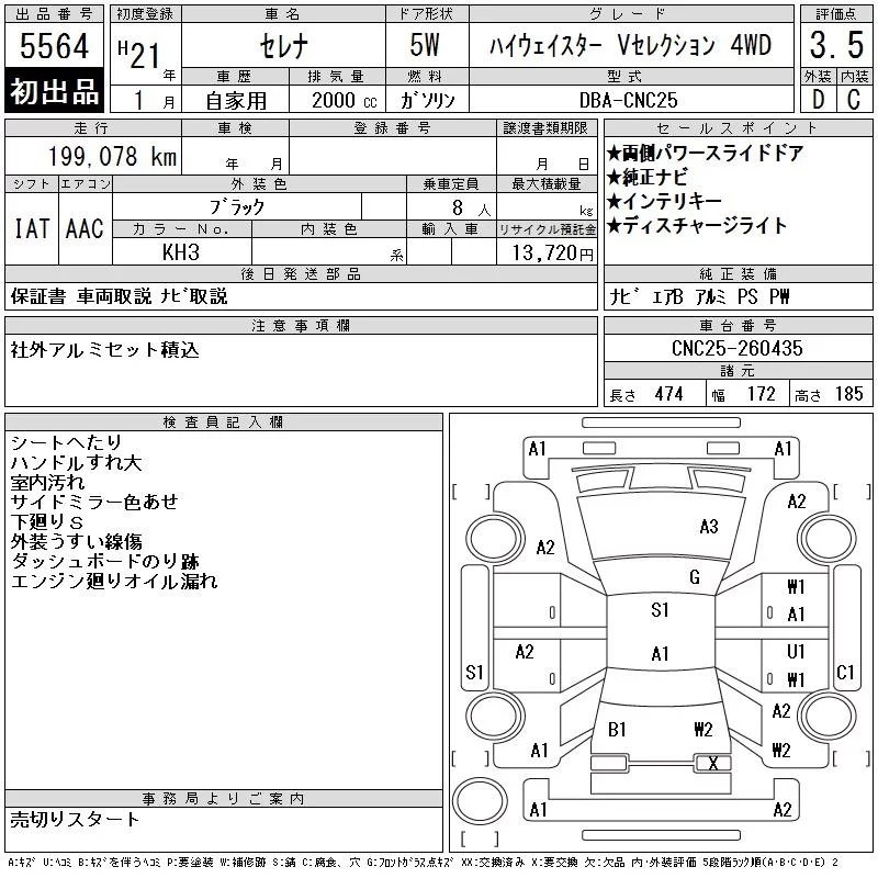 Nissan SERENA с аукциона Японии CAA Tohoku лот № 5564
