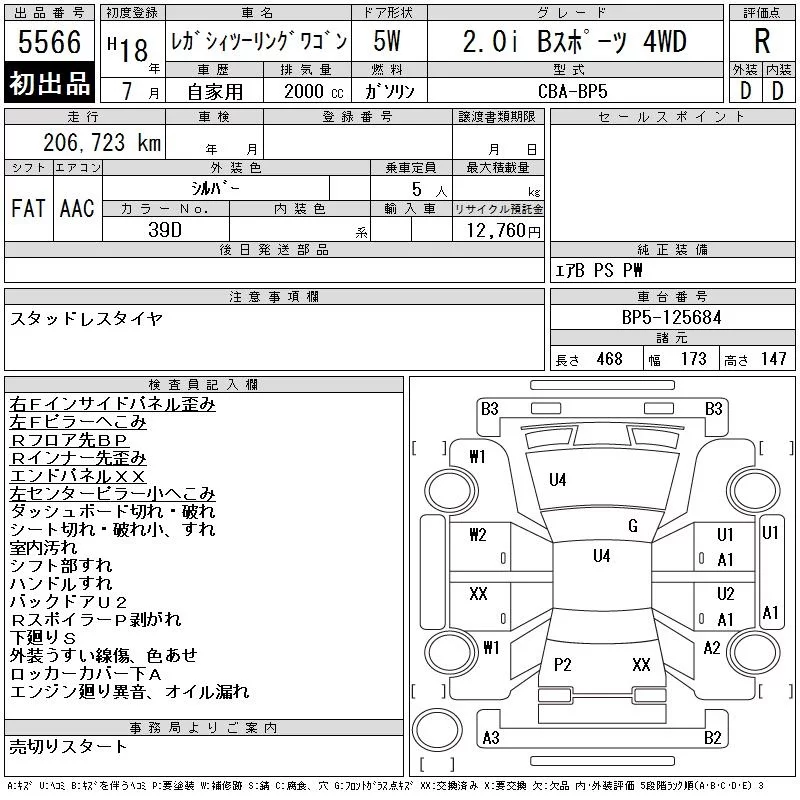 Subaru LEGACY с аукциона Японии CAA Tohoku лот № 5566