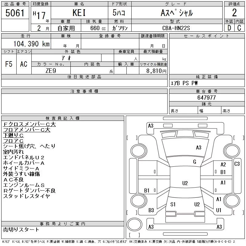 Suzuki KEI с аукциона Японии CAA Tohoku лот № 5061