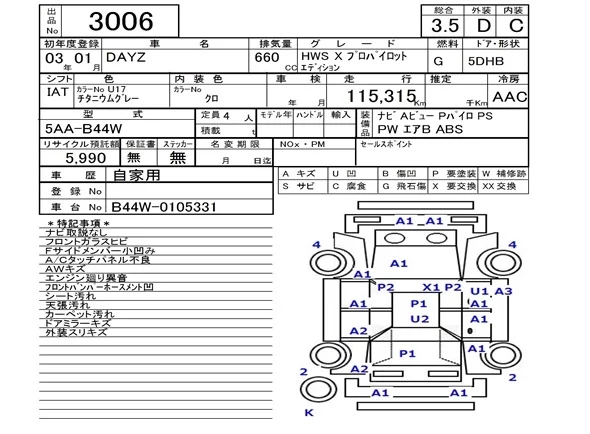 Nissan DAYZ с аукциона Японии NAA Fukuoka лот № 3006