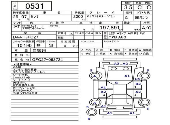 Nissan SERENA с аукциона Японии NAA Fukuoka лот № 531