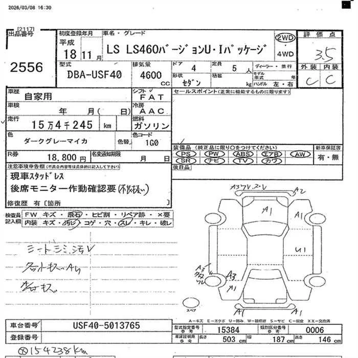 Lexus LS с аукциона Японии JU Nagano лот № 2556