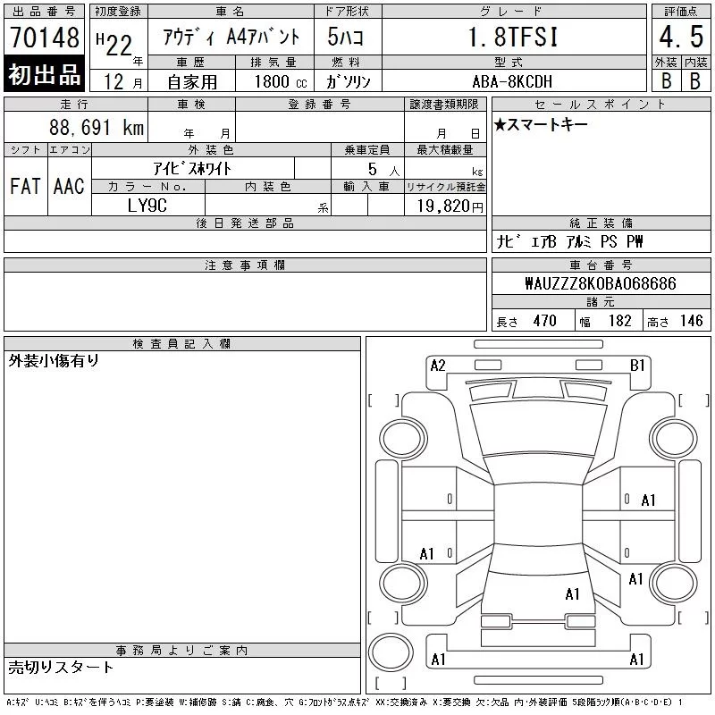 Audi A4 с аукциона Японии CAA Gifu лот № 70148
