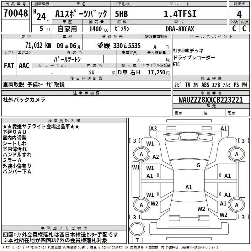 Audi A1 с аукциона Японии TAA Shikoku лот № 70048