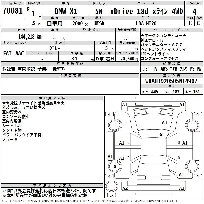 BMW X1 с аукциона Японии TAA Shikoku лот № 70081
