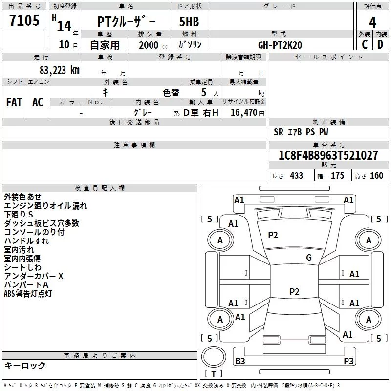 Chrysler PT Cruiser с аукциона Японии TAA Hiroshima лот № 7105