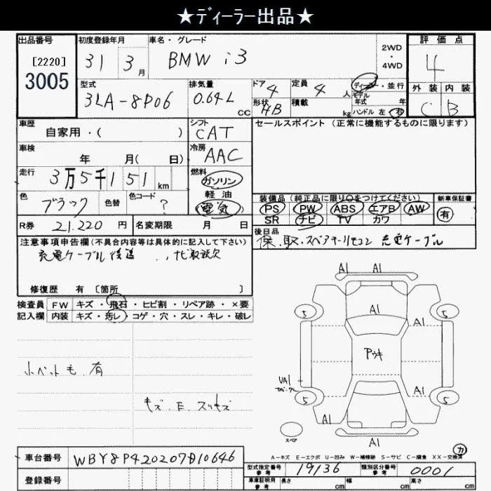 BMW i3 с аукциона Японии JU Saitama лот № 3005