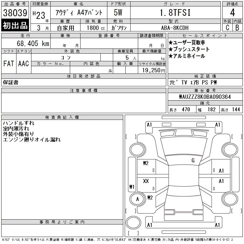 Audi A4 с аукциона Японии CAA Tokyo лот № 38039