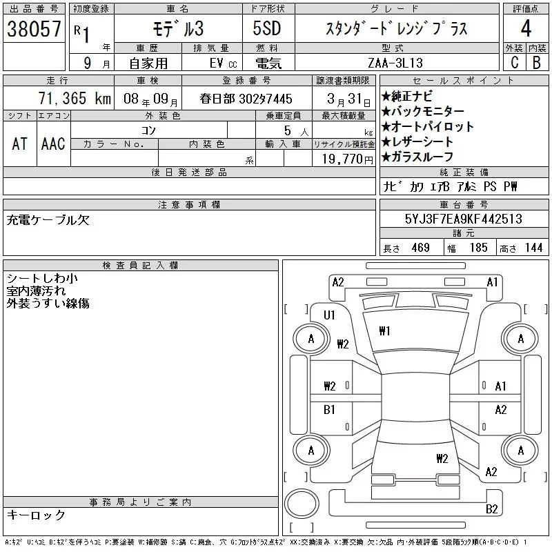 Tesla MODEL3 с аукциона Японии CAA Tokyo лот № 38057