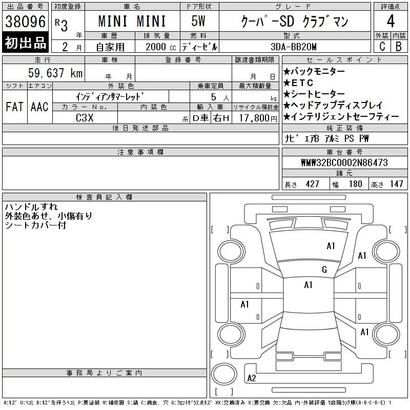 BMW MINI с аукциона Японии CAA Tokyo лот № 38096