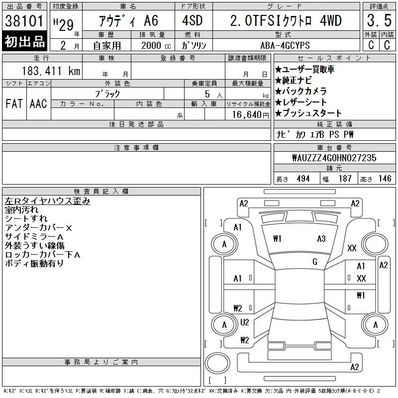 Audi A6 с аукциона Японии CAA Tokyo лот № 38101
