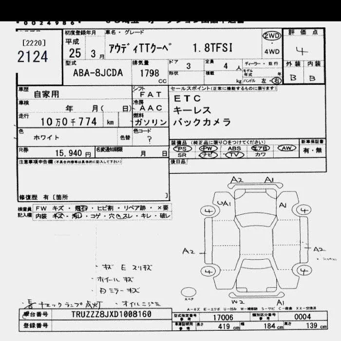 Audi TT с аукциона Японии JU Saitama лот № 2124