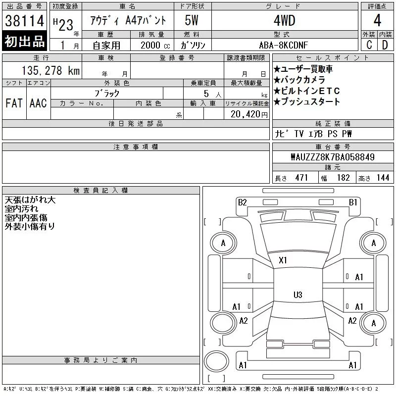 Audi A4 с аукциона Японии CAA Tokyo лот № 38114