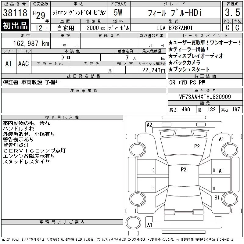 Citroen GRAND C4 с аукциона Японии CAA Tokyo лот № 38118