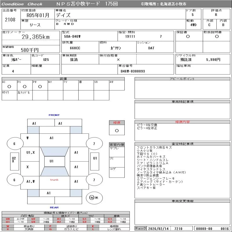 Nissan DAYZ с аукциона Японии NPS Tomakomai Nyusatsu лот № 2108