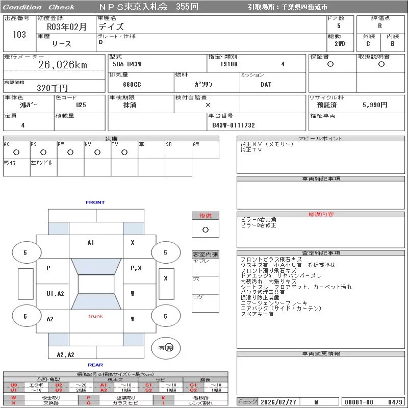 Nissan DAYZ с аукциона Японии NPS Tokyo Nyusatsu лот № 103