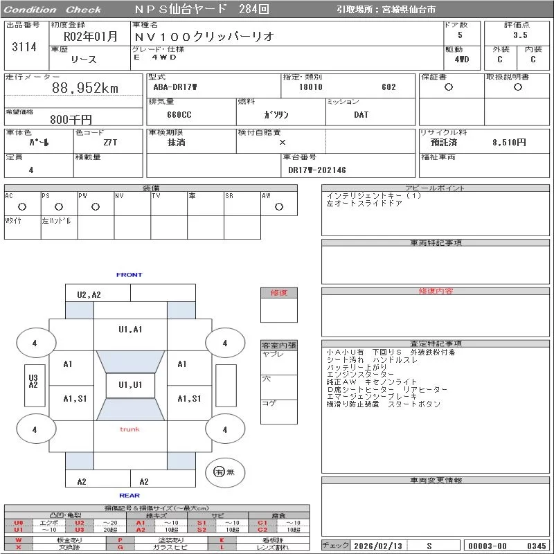 Nissan CLIPPER RIO с аукциона Японии NPS Sendai Nyusatsu лот № 3114