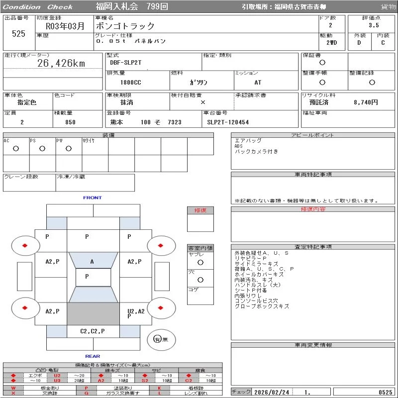 Mazda BONGO с аукциона Японии ORIX Fukuoka Nyusatsu лот № 525