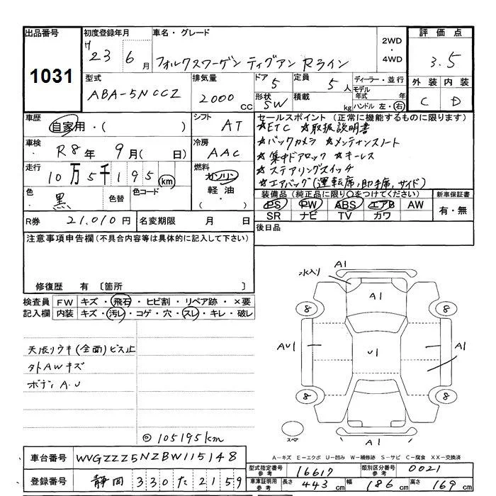 Volkswagen TIGUAN с аукциона Японии JU Shizuoka лот № 1031