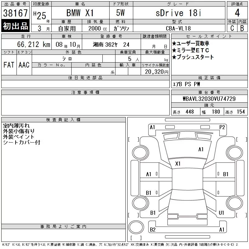 BMW X1 с аукциона Японии CAA Tokyo лот № 38167