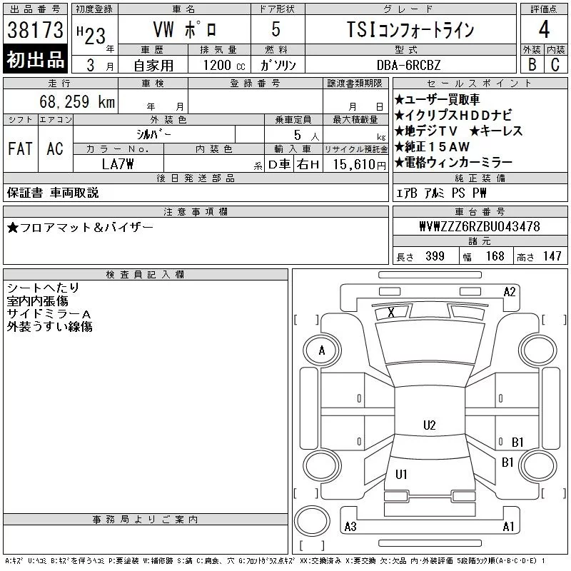Volkswagen POLO с аукциона Японии CAA Tokyo лот № 38173