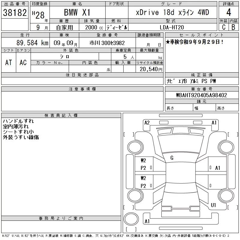 BMW X1 с аукциона Японии CAA Tokyo лот № 38182