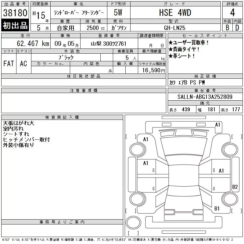 Rover FREELANDER с аукциона Японии CAA Tokyo лот № 38180