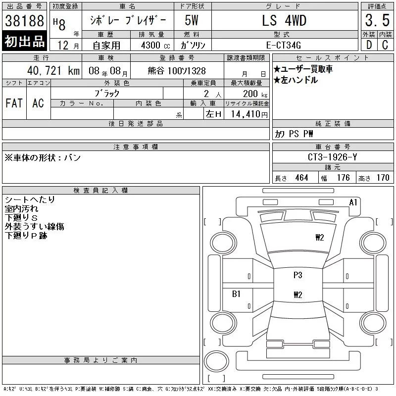 GM CHEVROLET BLAZER с аукциона Японии CAA Tokyo лот № 38188