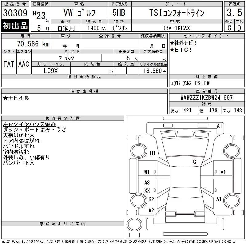 Volkswagen GOLF с аукциона Японии CAA Gifu лот № 30309