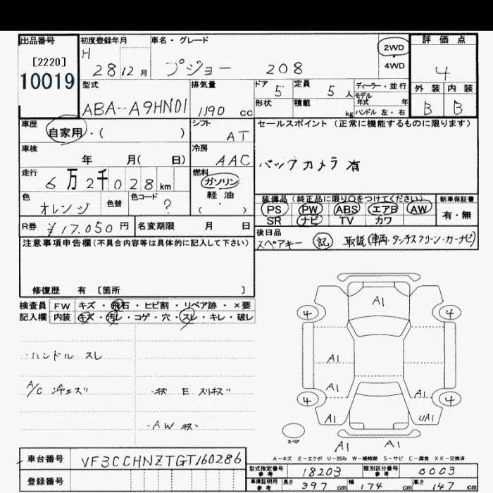 Peugeot 208 с аукциона Японии JU Saitama лот № 10019