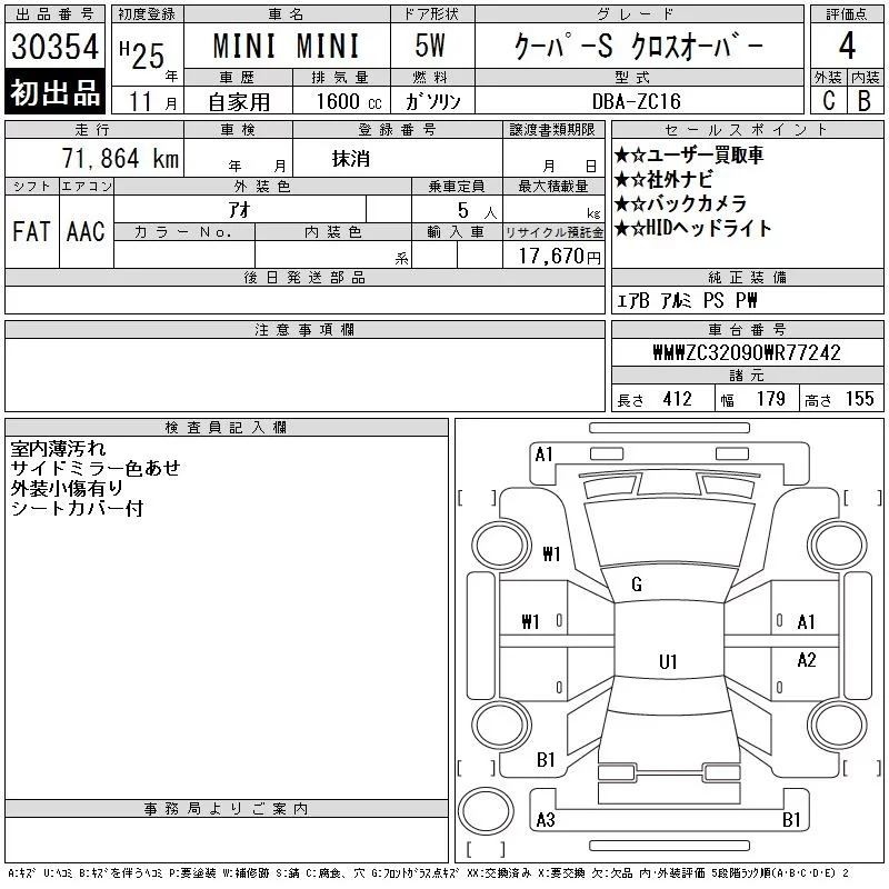 BMW MINI с аукциона Японии CAA Gifu лот № 30354