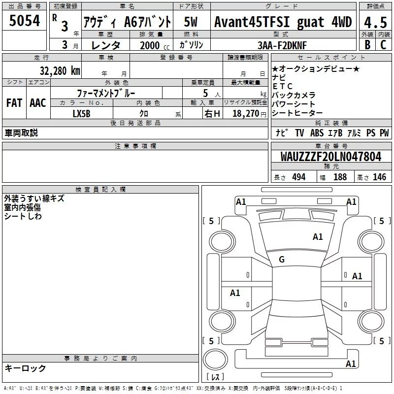 Audi A6 с аукциона Японии TAA Kyushu лот № 5054