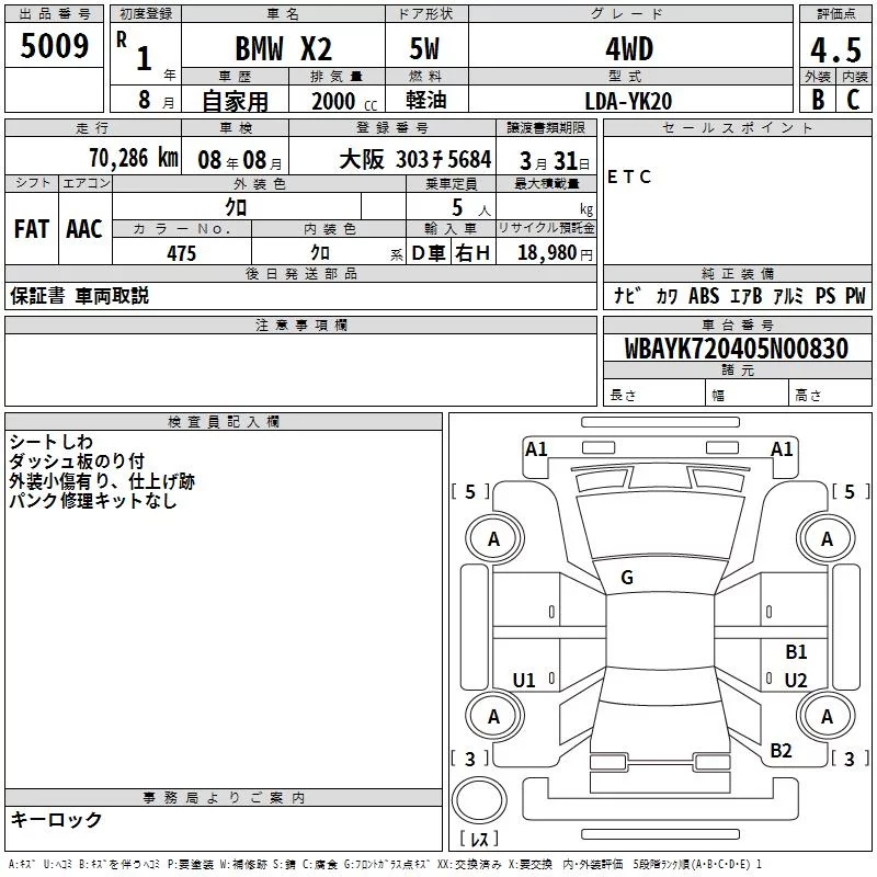 BMW X2 с аукциона Японии TAA Shikoku лот № 5009