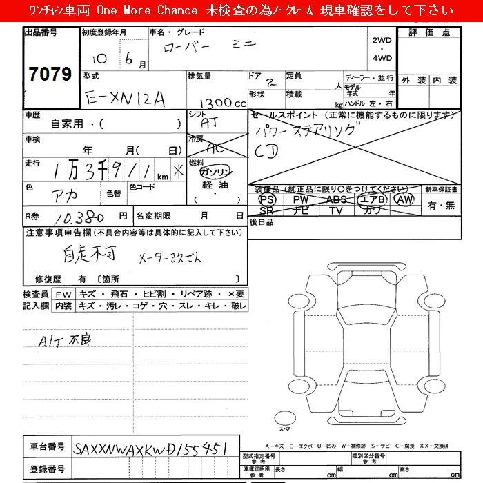 Rover MINI с аукциона Японии JU Shizuoka лот № 7079