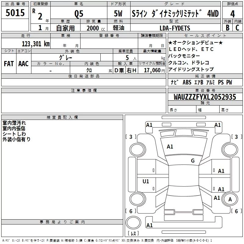 Audi Q5 с аукциона Японии TAA Kinki лот № 5015