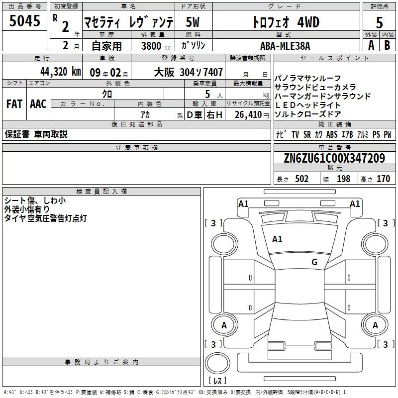 Maserati LEVANTE с аукциона Японии TAA Kinki лот № 5045