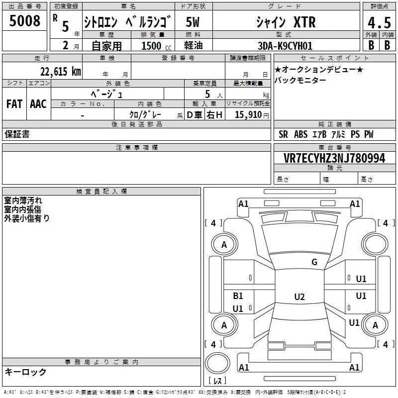 Citroen Berlingo с аукциона Японии TAA Hiroshima лот № 5008