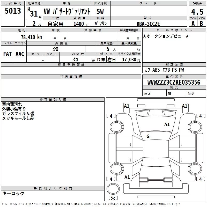 Volkswagen PASSAT VARIANT с аукциона Японии TAA Hiroshima лот № 5013