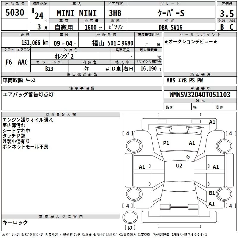 BMW MINI с аукциона Японии TAA Hiroshima лот № 5030