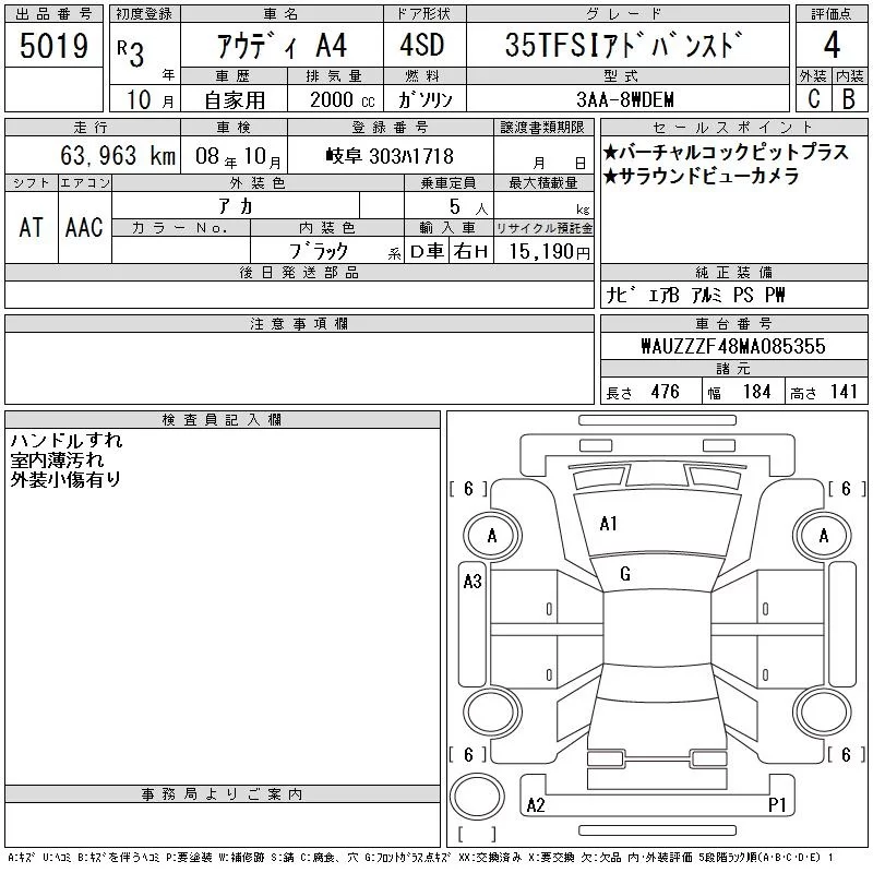 Audi A4 с аукциона Японии CAA Gifu лот № 5019
