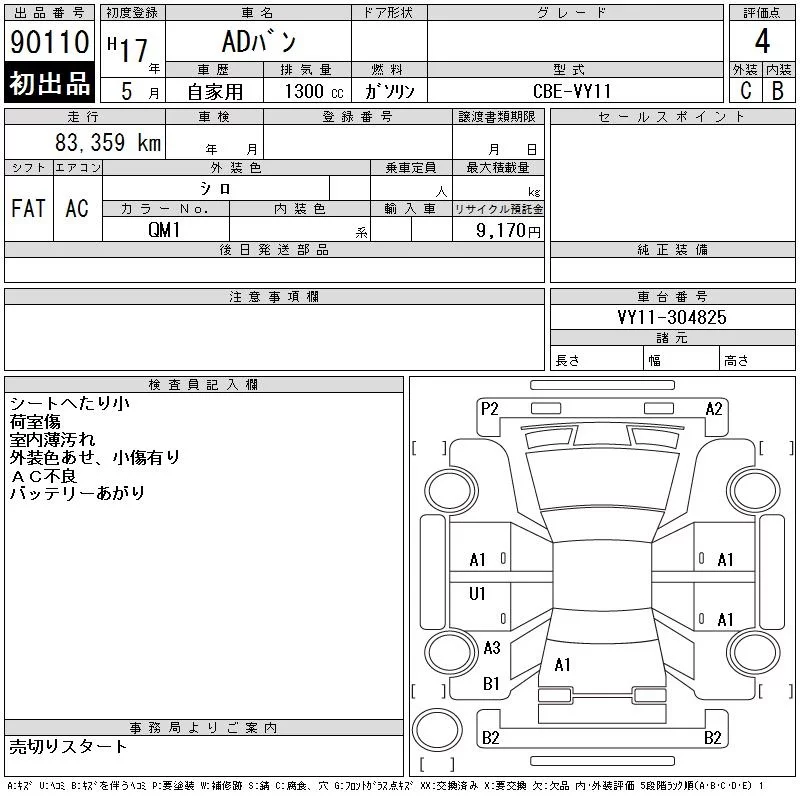 Nissan AD с аукциона Японии CAA Chubu лот № 90110