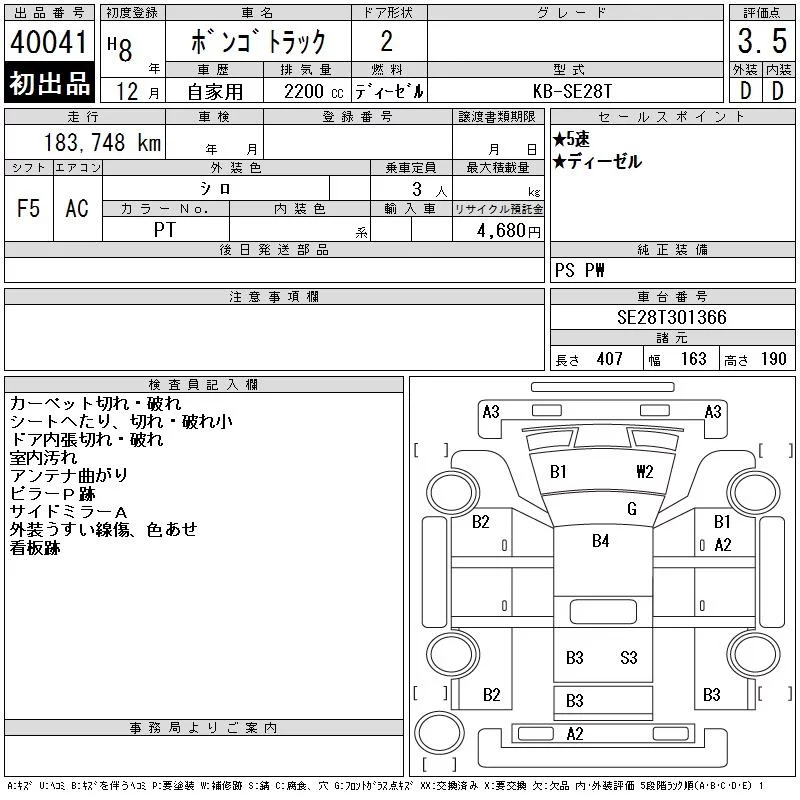 Mazda BONGO с аукциона Японии CAA Chubu лот № 40041