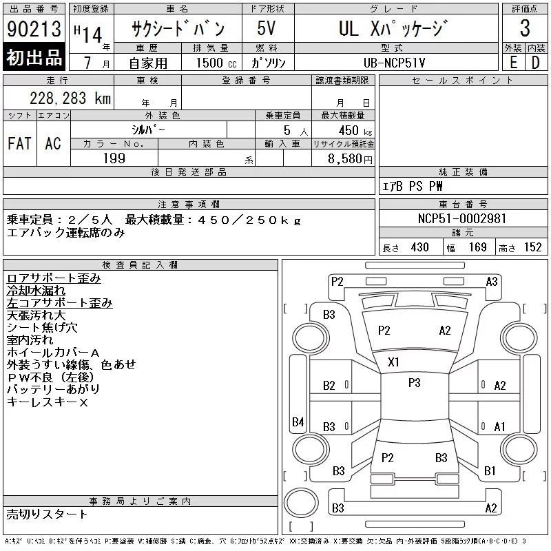 Toyota SUCCEED с аукциона Японии CAA Chubu лот № 90213