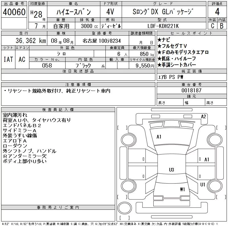 Toyota HIACE VAN с аукциона Японии CAA Chubu лот № 40060